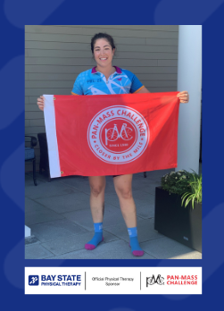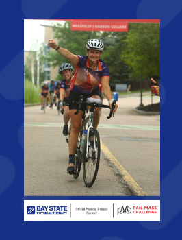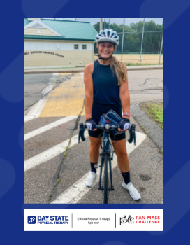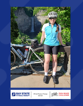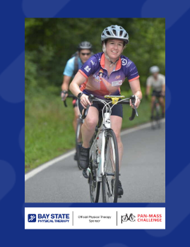 “I am so excited to participate in my first PMC with the Bay State Physical Therapy Team! I ride in honor of family, friends, and former and current patients who have fought or are currently fighting cancer. Cancer never stops, so I am very proud to support a cause that goes directly to cancer research and finding a cure!”