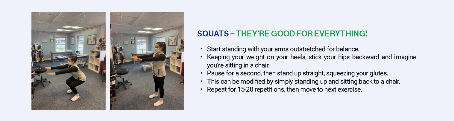 During these cold winter months, we sometimes need to get creative to keep our bodies fit. Circuit exercises involve completing a few different movements in sets with short periods of rest between them. These circuits are great because they engage your entire body, they’re a quick and efficient workout, and they require little to no equipment. They can also be performed alone or with a group of friends to keep everyone moving!