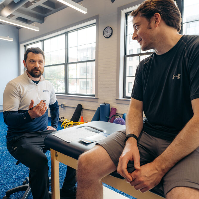 Your first visit starts with a detailed evaluation. Your physical therapist will ask about your symptoms, medical history, lifestyle, and work habits to uncover the root cause of your pain. We encourage you to bring questions — the more, the better.