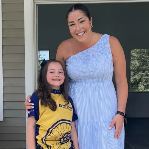 “This will be my second year riding in the Pan-Mass Challenge on the Bay State PT Riding Team alongside my boyfriend, Nick! I’m dedicating my ride to everyone impacted by cancer, especially my Uncle Tommy, who passed away at just 22 from leukemia. My mom, who runs marathons in his memory, once told me: ‘The pain he endured will never come close to the temporary pain you’ll feel during the ride.’ That’s stayed with me. I’m honored to ride in his memory and to support a cause that brings hope to so many.”